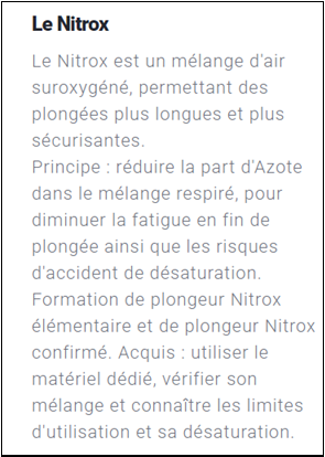 Cette formation permet de progresser dans le cursus de plongée Nitrox.
